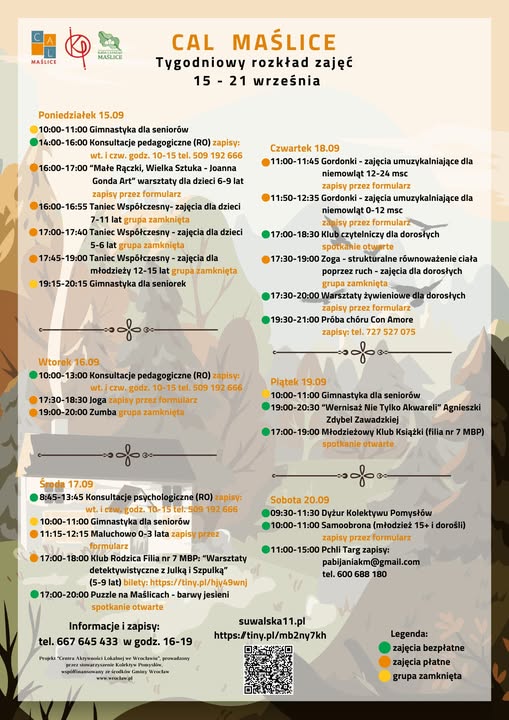 Formularz do zapisów pod linkiem. Poniedziałek 15.09🟡 10:00-11:00 Gimnastyka dla seniorów🟢 14:00-16:00 Konsultacje pedagogiczne (RO)…