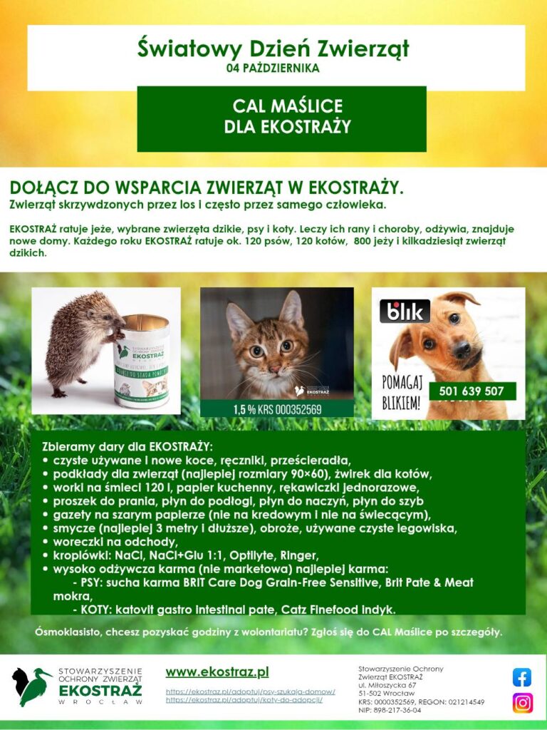 Dziś obchodzimy Światowy Dzień Zwierząt Z tej okazji rozpoczynamy u nas zbiórkę najbardziej potrzebnych artykułów…