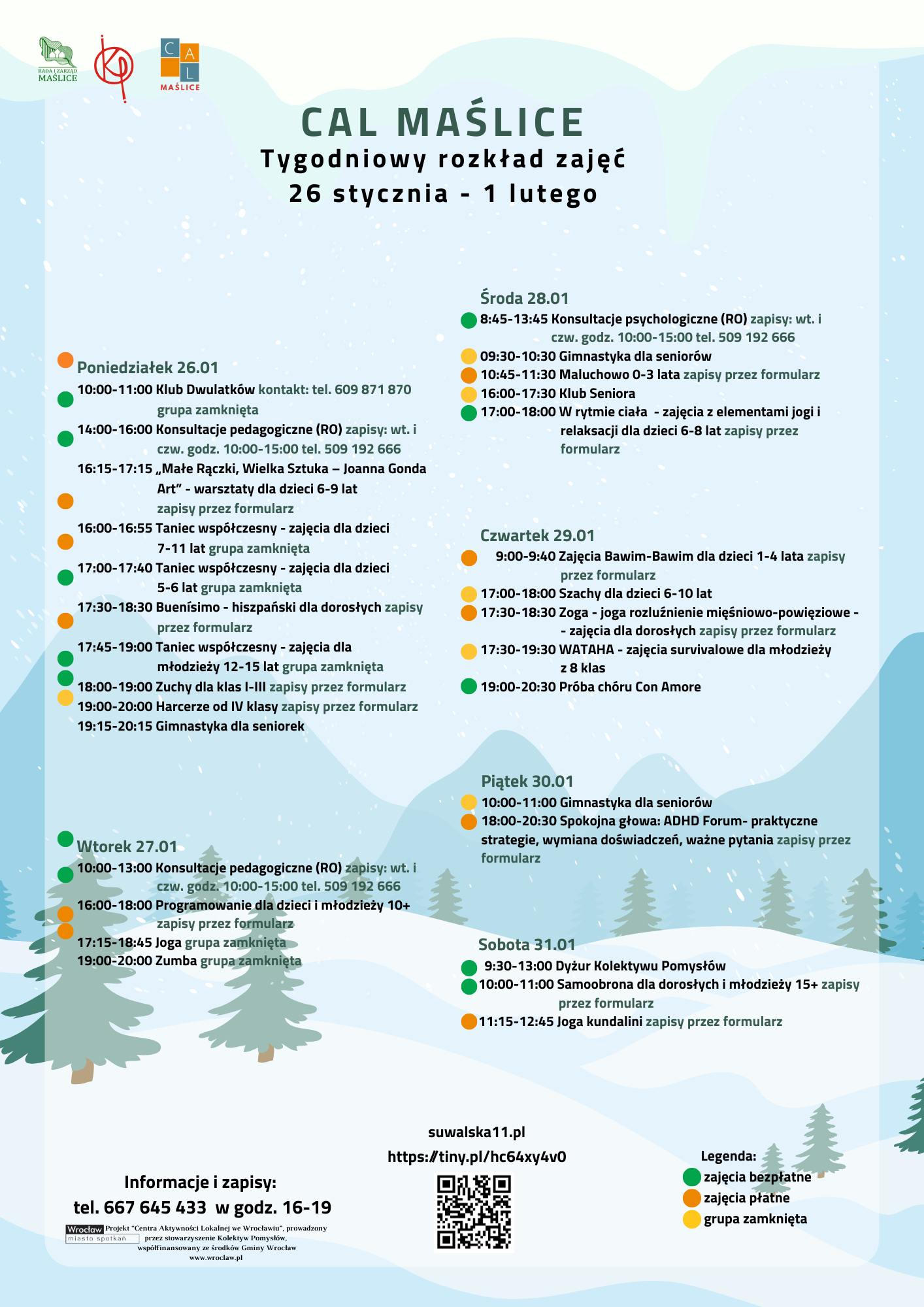 Przedstawiamy plan zajęć na ostatni tydzień stycznia