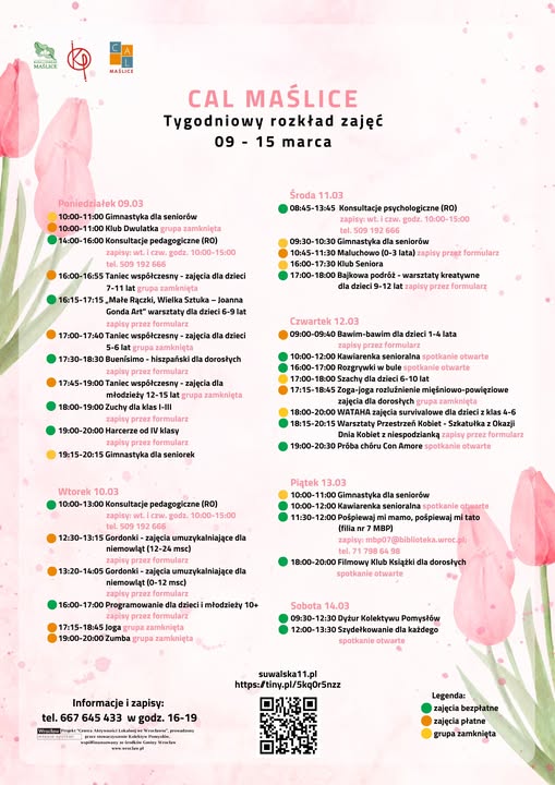 Przedstawiamy plan zajęć na kolejny tydzień marca